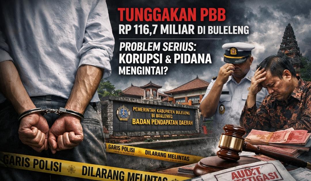 BULELENG, BUSERJATIM.COM GROUP – Angka tunggakan Pajak Bumi dan Bangunan (PBB) di Kabupaten Buleleng yang mencapai Rp116,7 miliar sejak 2018 hingga 2024 bukan sekadar deretan angka dalam laporan keuangan. Ia menjelma menjadi sinyal keras adanya persoalan serius dalam tata kelola pajak daerah—mulai dari lemahnya penagihan, potensi kelalaian administratif, hingga kemungkinan pelanggaran hukum yang tidak bisa dianggap remeh.