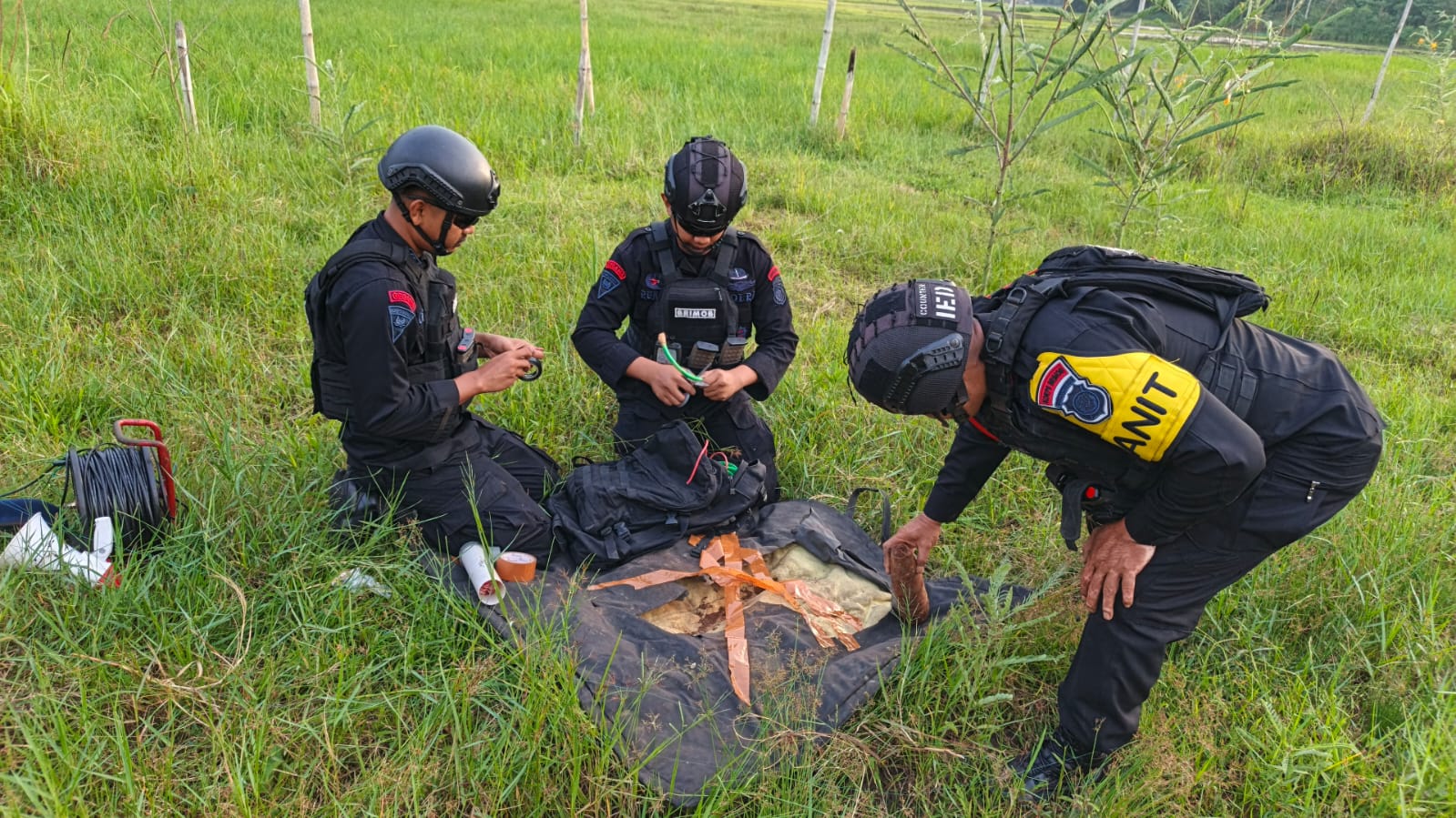 Selanjutnya, tepat pukul 17.00 WIB, tim melaksanakan penanganan dan disposal munisi militer jenis proyektil peluru. Proses dilakukan secara profesional oleh personel terlatih, dengan mempertimbangkan aspek keamanan lingkungan sekitar serta keselamatan masyarakat.