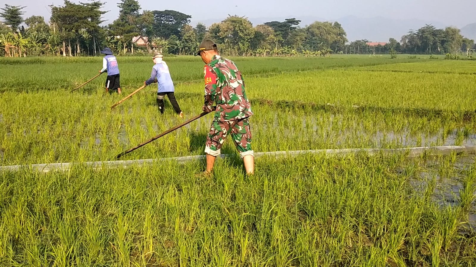 “ Pendampingan terhadap kegiatan para petani ini adalah salah satu tugas yang terus dilakukan baik mulai dari penyiapan lahan, penanaman bibit, penyiangan gulma seperti yang hari ini dilakukan, perawatan hingga panen tiba, “ ujar Babinsa Bulak.