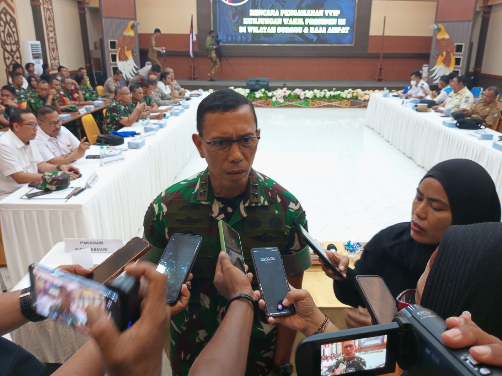 Dalam Keterangannya saat di temui awak media, Pangdam XVIII/Kasuari, Mayjen TNI Christian Kurnianto Tuhuteru, menyampaikan bahwa koordinasi lintas sektor terus diperkuat melalui pelaksanaan rapat koordinasi (rakor) pengamanan. Langkah ini dilakukan guna memastikan seluruh rangkaian kegiatan kunjungan Wakil Presiden berjalan aman, tertib, dan lancar.