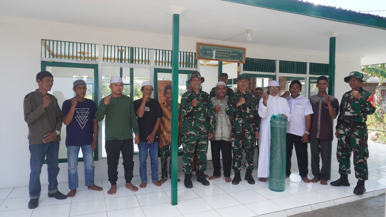 Sebagai simbolisasi penyerahan hasil kegiatan, Kepala Staf Kodim (Kasdim) 1002/HST Mayor Inf Moh. Alip Suroso menyerahkan bantuan karpet kepada pengurus langgar Darussalam pada hari Rabu, 4 Juni 2025.