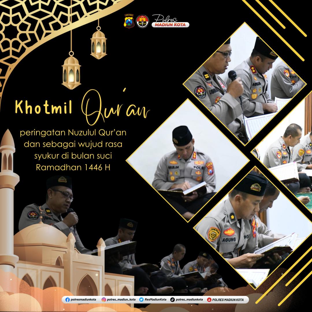 KOTA MADIUN, BUSERJATIM.COM GROUP – Dalam rangka memperingati Nuzulul Qur’an, Polres Madiun Kota menggelar kegiatan Khataman Al-Qur’an bertempat di Mushola Asy Syams Bhayangkara, Senin (17/03/2025) pagi.