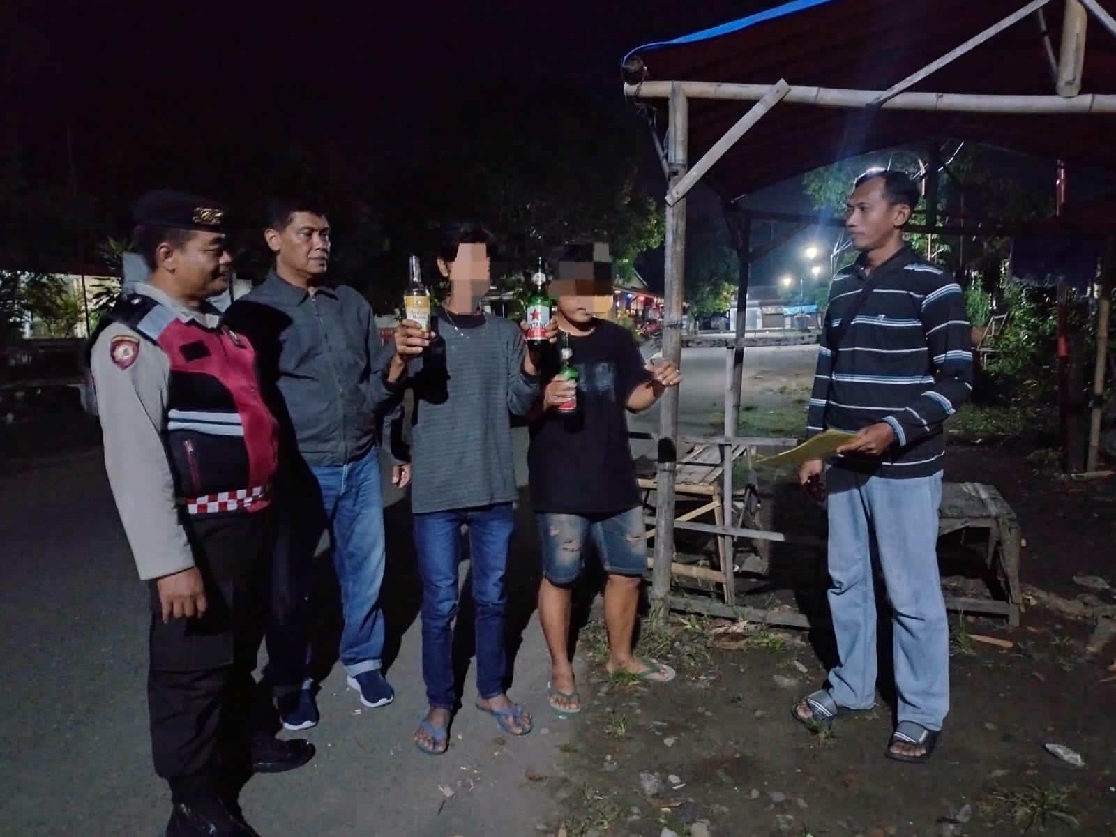 “Sesampainya dijalan umum masuk Desa Karangrejo tim mengetahui 2 (dua) orang pemuda yang sedang minum minuman keras beralkohol di pinggir jalan dengan berteriak-teriak sehingga mengganggu ketertiban umum,” sambungnya.