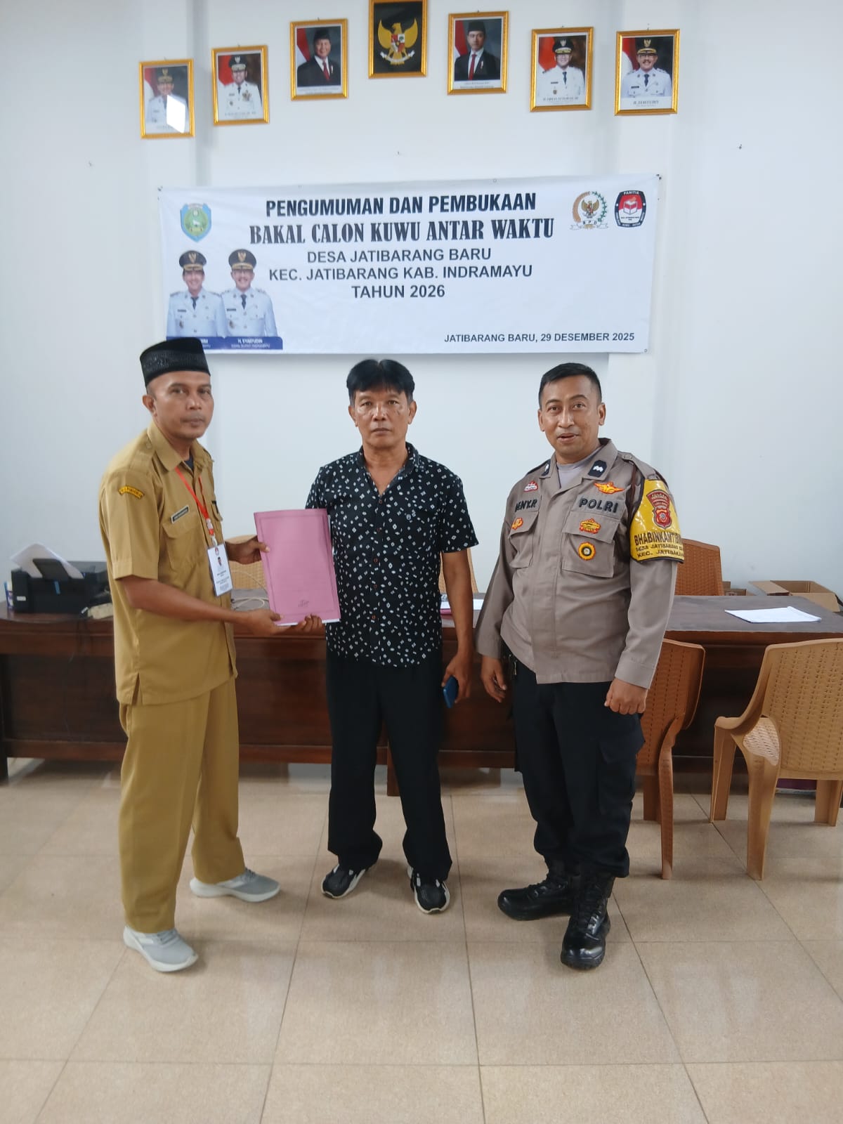 “Bhabinkamtibmas Desa Jatibarang Baru melaksanakan pemantauan calon PAW Kuwu, mulai dari tahap pengambilan berkas hingga pendaftaran. Hingga saat ini tercatat sebanyak 11 warga telah mendaftarkan diri sebagai calon PAW Kuwu Desa Jatibarang Baru,” ujar Kompol Darli.