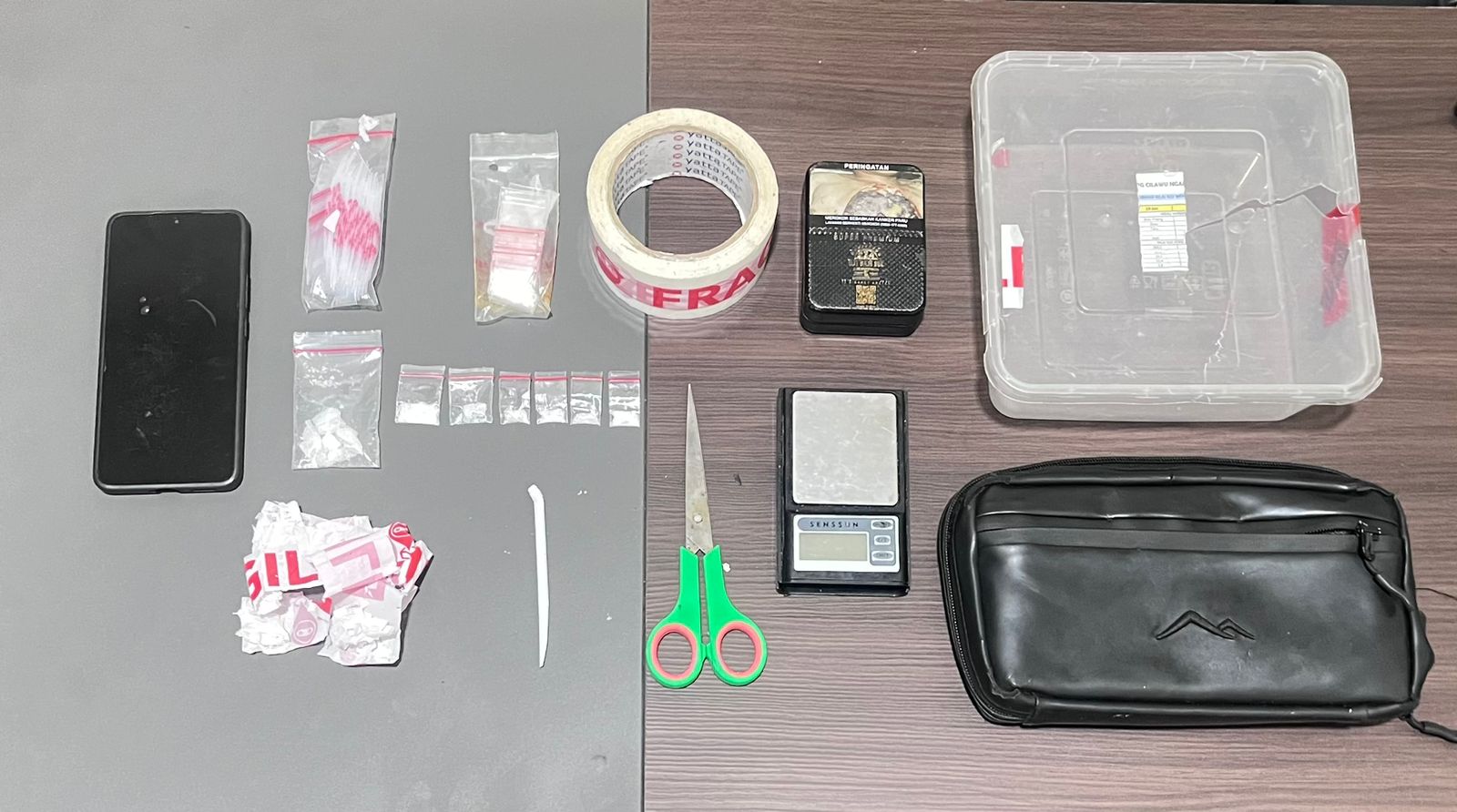 Dalam penangkapan tersebut, petugas turut mengamankan sejumlah barang bukti di antaranya beberapa paket sabu yang dikemas dalam plastik klip bening, timbangan digital, alat bantu konsumsi, serta satu unit handphone yang diduga digunakan untuk transaksi.