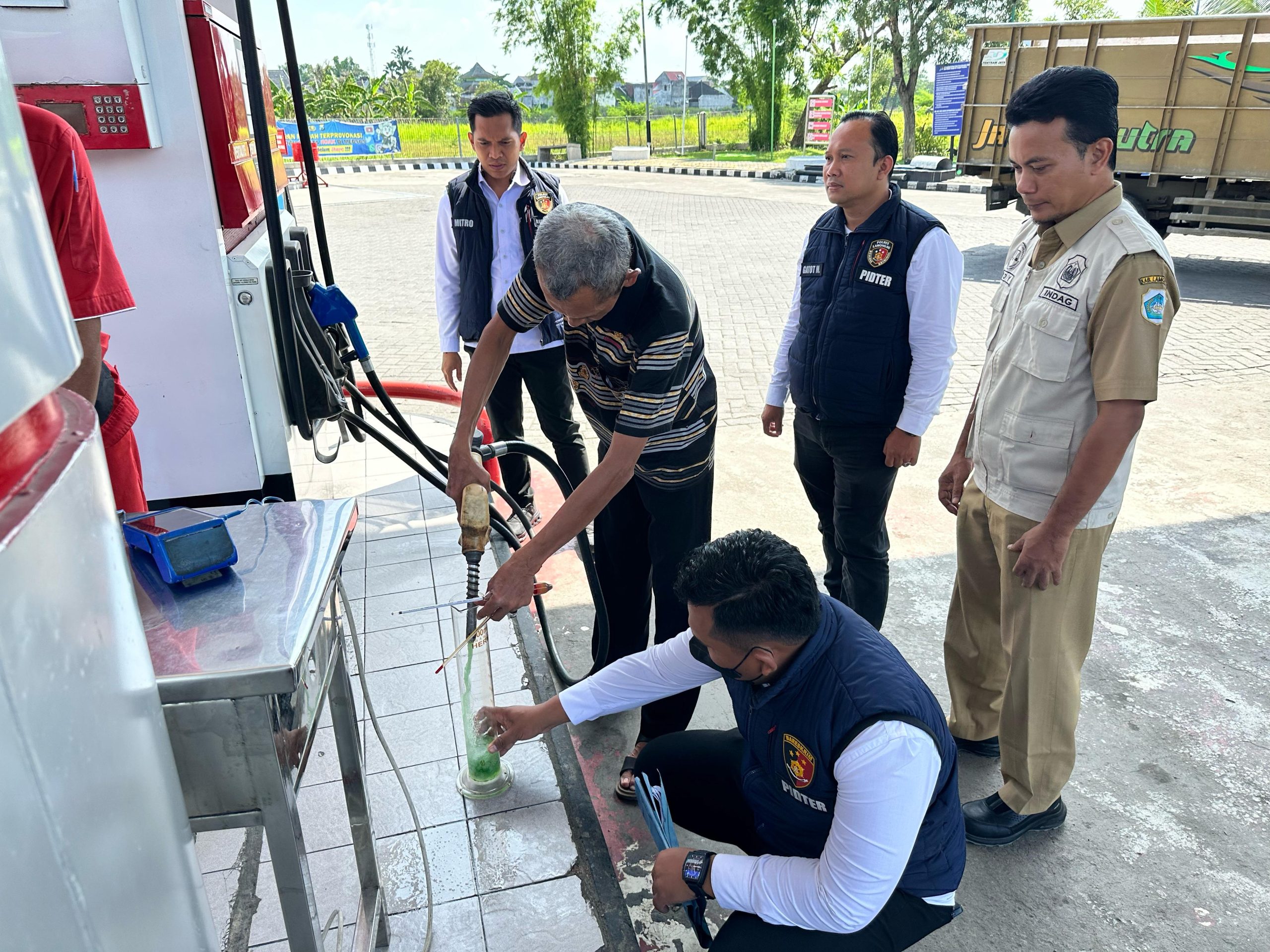 Pemeriksaan dilakukan menggunakan alat ukur density dan berat jenis bahan bakar untuk memastikan apakah BBM, khususnya Pertalite dan Pertamax.