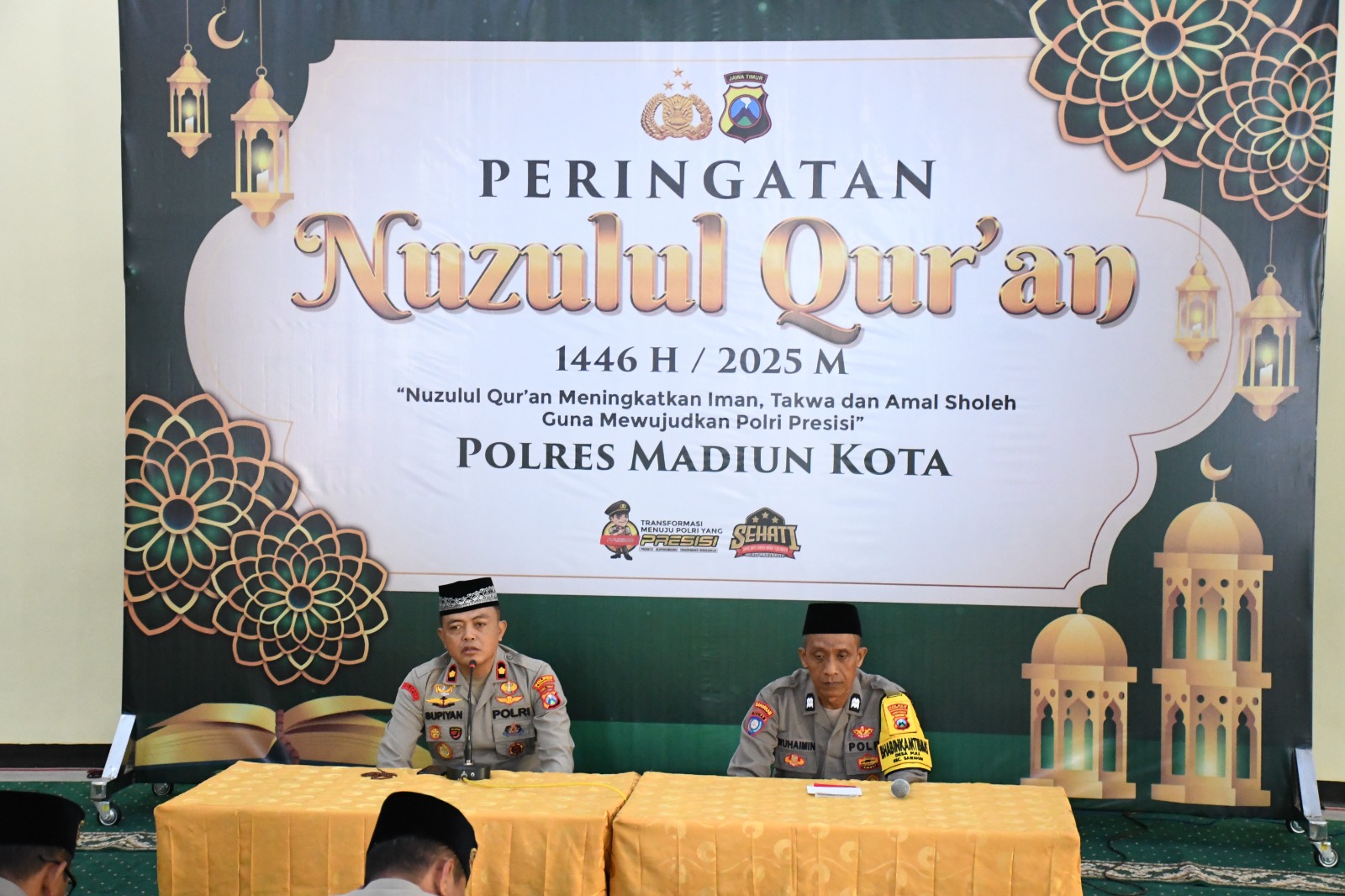 Acara bertema “Nuzulul Quran: Meningkatkan Iman, Taqwa, dan Amal Saleh Guna Mewujudkan Polri yang Presisi” ini dihadiri Wakapolres Kompol Supiyan, S.Sos, PJU, Perwira, Bintara, ASN, Bhayangkari cabang Madiun kota dan Bhayangkari ranting polsek jajaran Polres Madiun Kota.