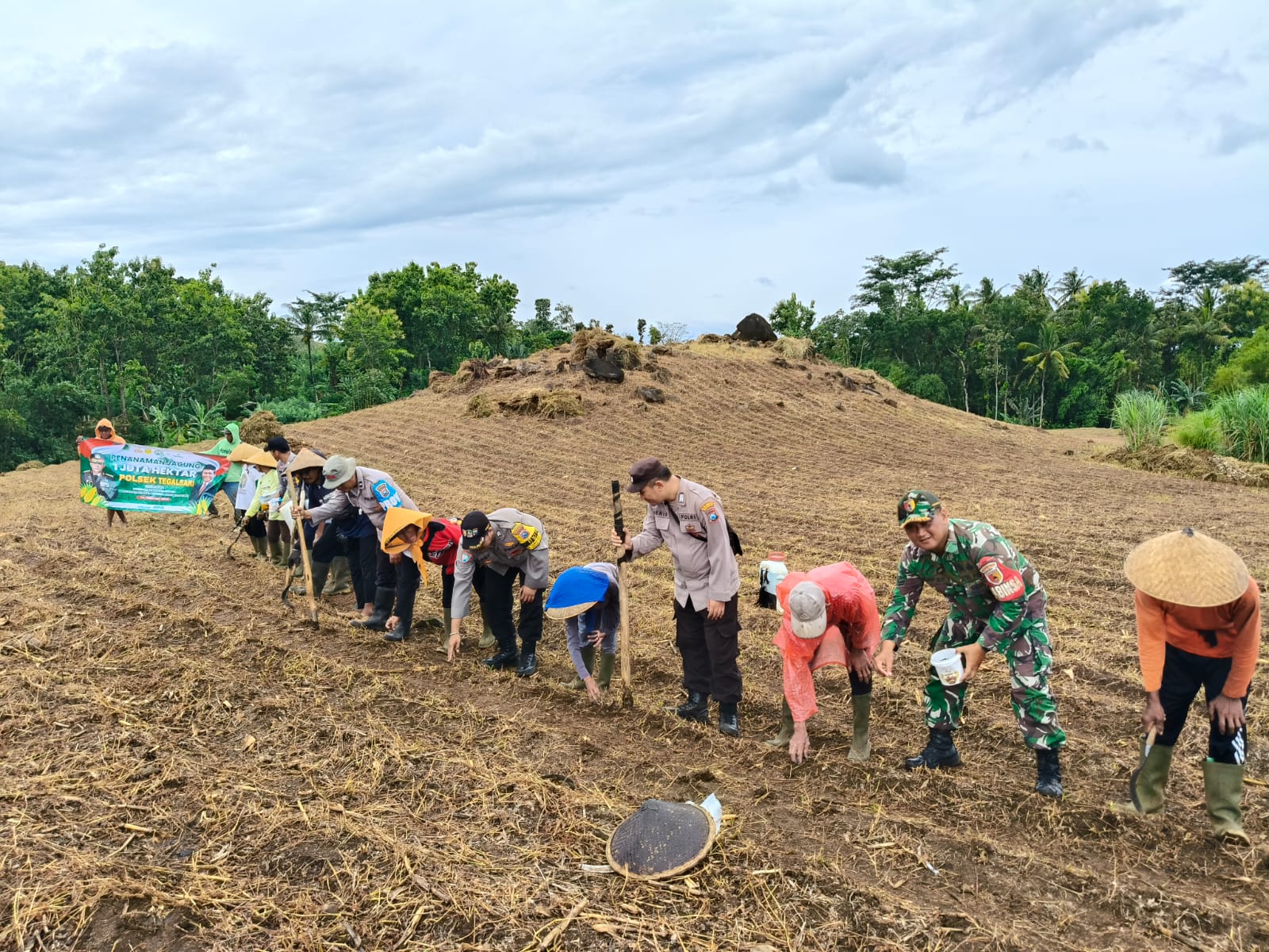 Dalam upaya mendukung program ketahanan pangan nasional, Polsek Jajaran Polresta Banyuwangi mengandeng Instansi terkait dan warga masyarakat melalui kelompk tani menggelar acara penanaman jagung serentak di Polsek jajaran Polresta Banyuwangi pada Rabu (12/2/2025).