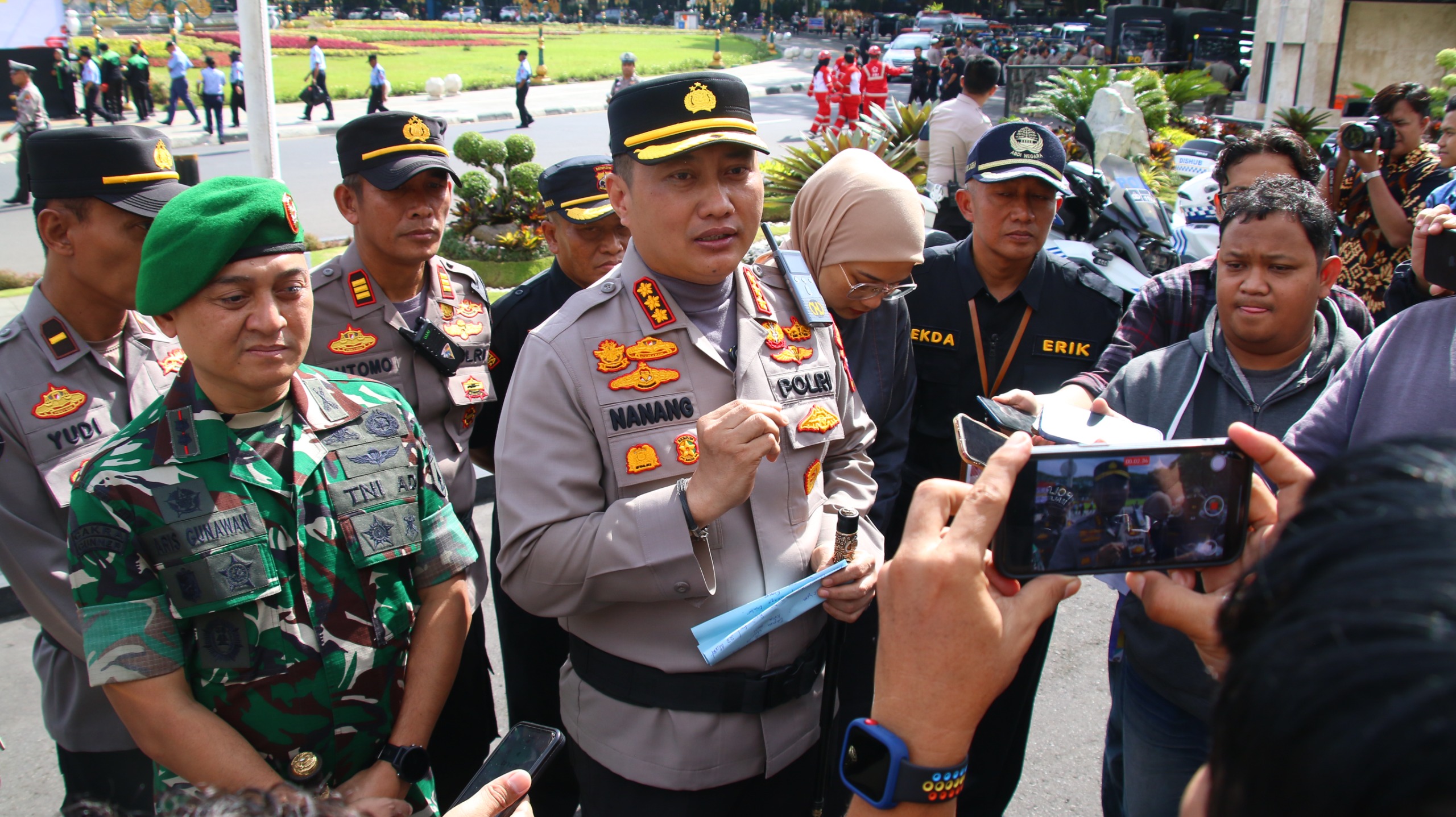 “Jika menemukan hal-hal mencurigakan, segera laporkan kepada petugas terdekat atau hubungi 110 call center kami,” kata Kombes Pol Nanang.