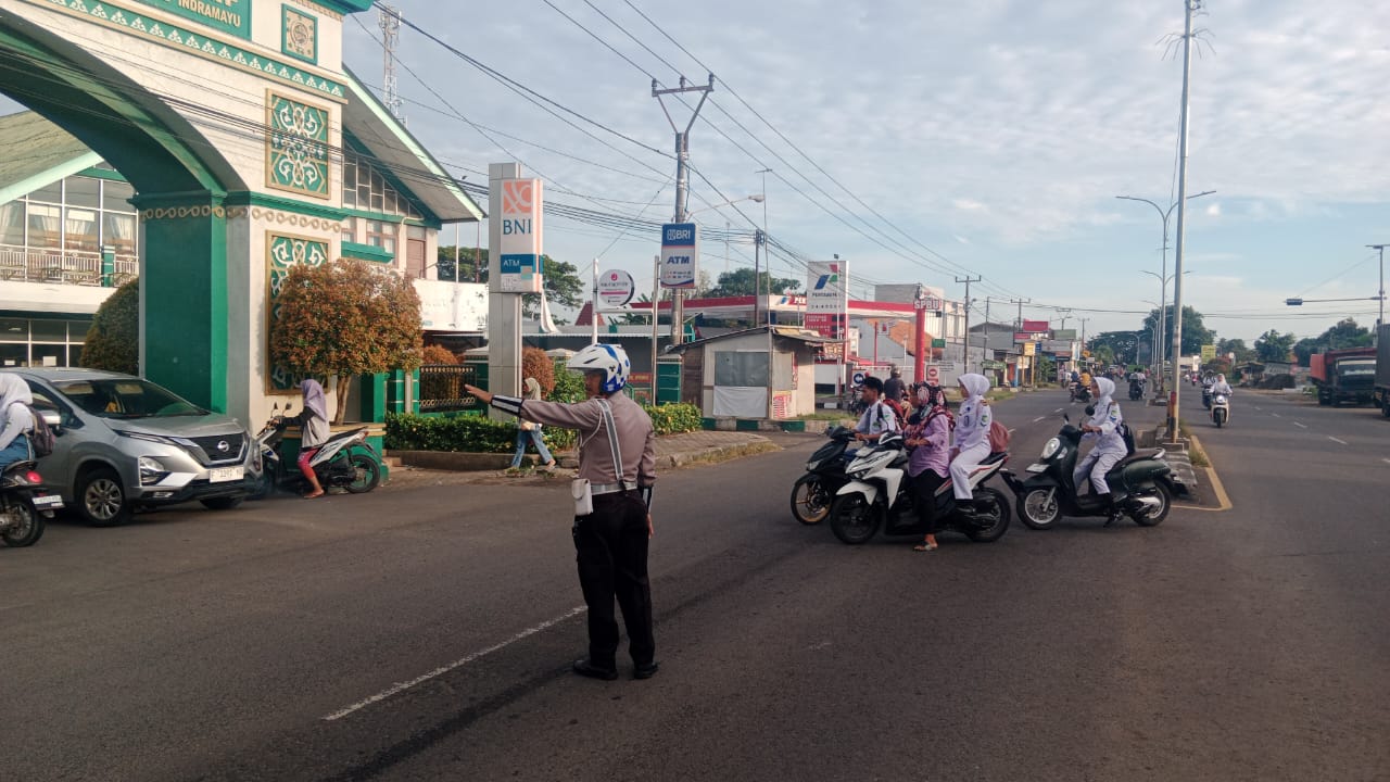 Langkah ini dilakukan guna memastikan kelancaran arus lalu lintas serta menjamin keamanan para pengguna jalan, terutama di titik-titik krusial seperti pertigaan Desa Sendang, Kecamatan Karangampel, Kabupaten Indramayu, Senin (13/4/2026).