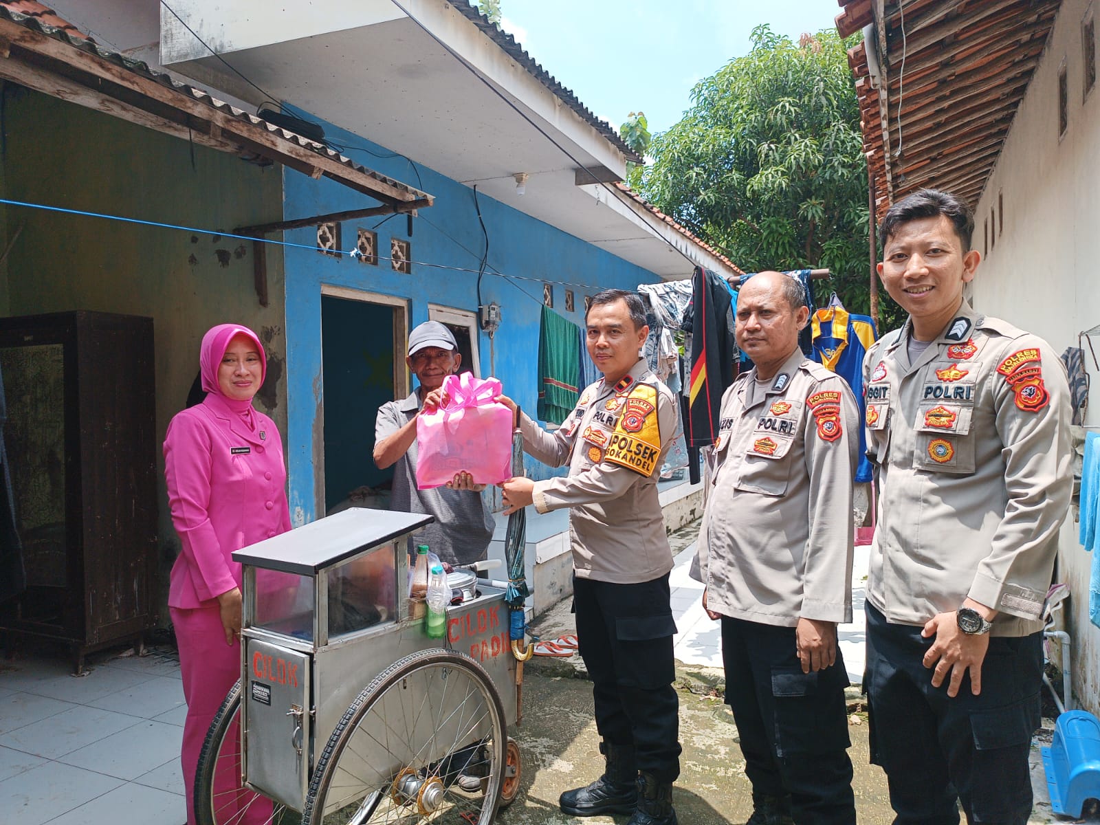 Majalengka, Sebagai bentuk kepedulian sosial di bulan suci Ramadan, Polsek Kasokandel menggelar kegiatan bakti sosial (baksos) dengan membagikan sembako kepada lansia dan pedagang cilok keliling di Blok Warna Sari II, Desa Gandasari, Kecamatan Kasokandel, Kabupaten Majalengka, Jumat (14/3/2025).