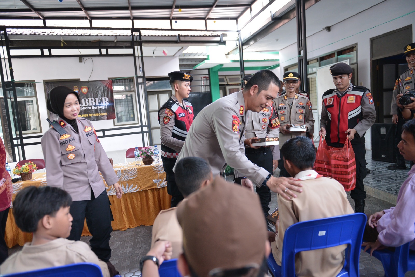SITUBONDO , BUSERJATIM.COM GROUP – Dalam rangka menjalankan program sosial bertajuk Pasabber “Pasukan Samapta Bersedekah”, Kapolres Situbondo AKBP Rezi Dharmawan, S.I.K., M.I.K. , bersama jajaran Satuan Samapta melaksanakan kegiatan sosial membagikan makanan bergizi kepada anak-anak di Sekolah Luar Biasa (SLB) Dharma Wanita Situbondo, Jum’at (11/4/2025)
