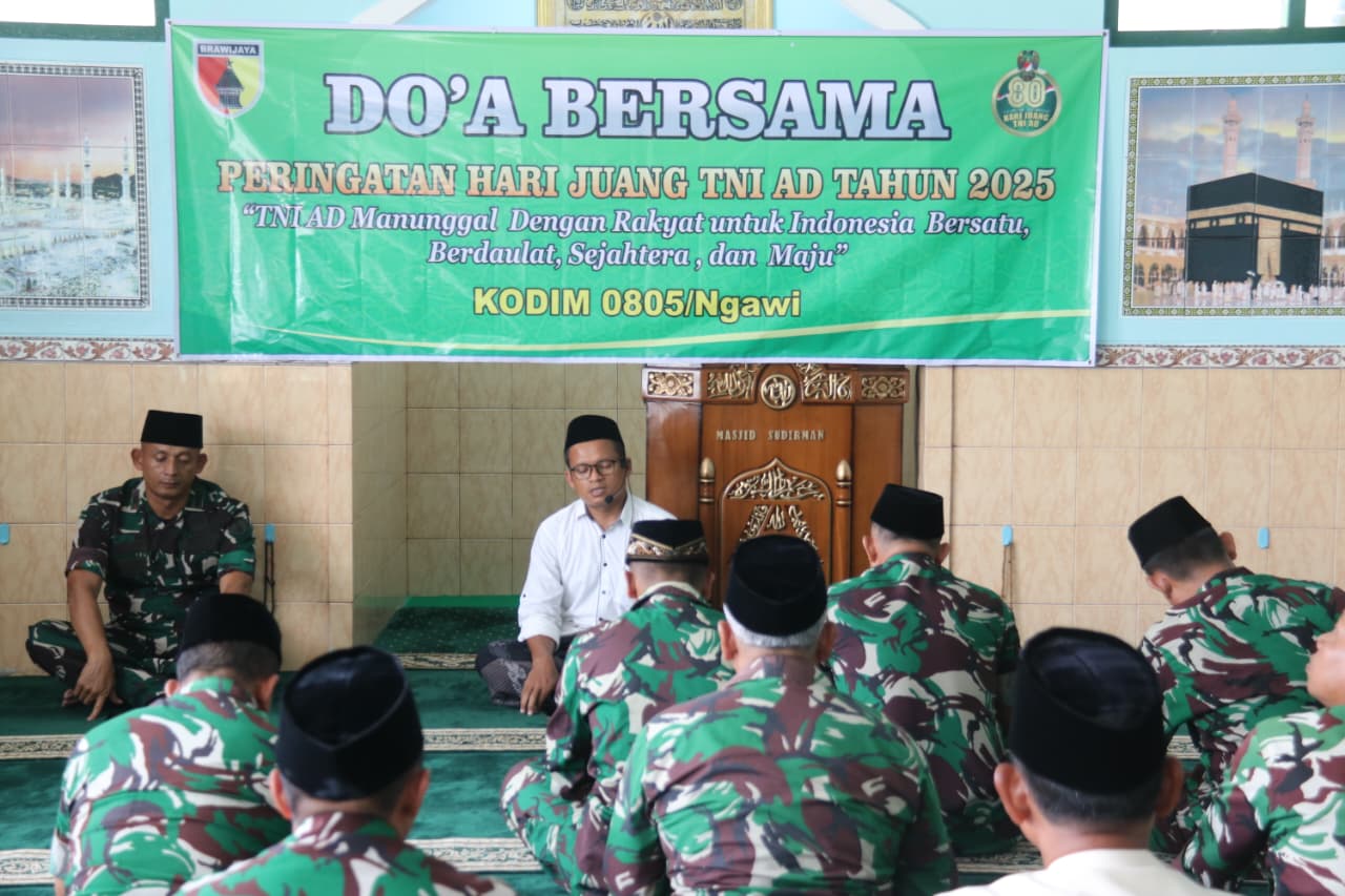 NGAWI, BUSERJATIM.COM GROUP – Dalam rangka mensyukuri nikmat kemerdekaan dan mengenang jasa para pahlawan yang gugur dalam Pertempuran 15 Desember di Ambarawa, Kodim 0805 Ngawi menggelar doa bersama di Masjid Sudirman, Makodim Ngawi, Jl. J.A. Suprapto No. 01 Ngawi. Jum’at (12/12/2025).