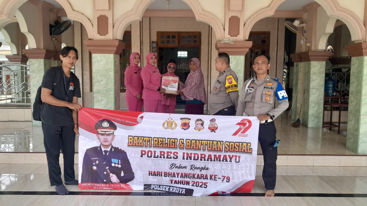 Indramayu – Dalam rangka memperingati Hari Bhayangkara ke-79 tahun 2025, Polsek Kroya Polres Indramayu Polda Jabar melaksanakan kegiatan Bakti Religi dengan tema “Polri Untuk Masyarakat”, Sabtu (14/6/2025).