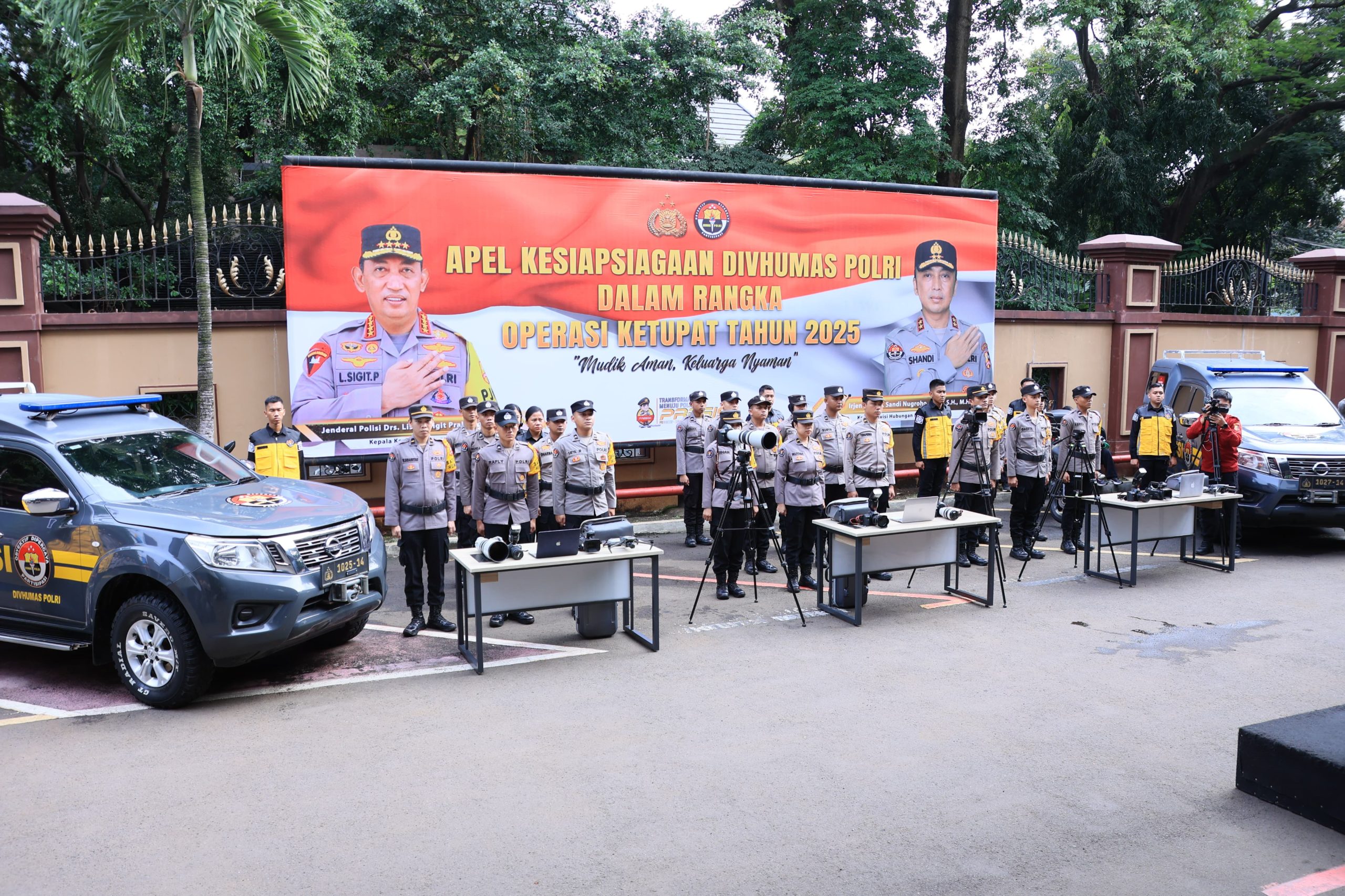 “Hari ini telah digelar personel dan kemudian juga dipersiapkan dan diperlihatkan tadi beberapa perlengkapannya, baik itu kendaraan, perlengkapan alat utama dalam melaksanakan tugas, serta operatornya siapa dan bagaimana nanti sistem skema landscape dalam kinerja menghadapi Operasi Ketupat,” ujar Karopenmas, Rabu (19/3/25).