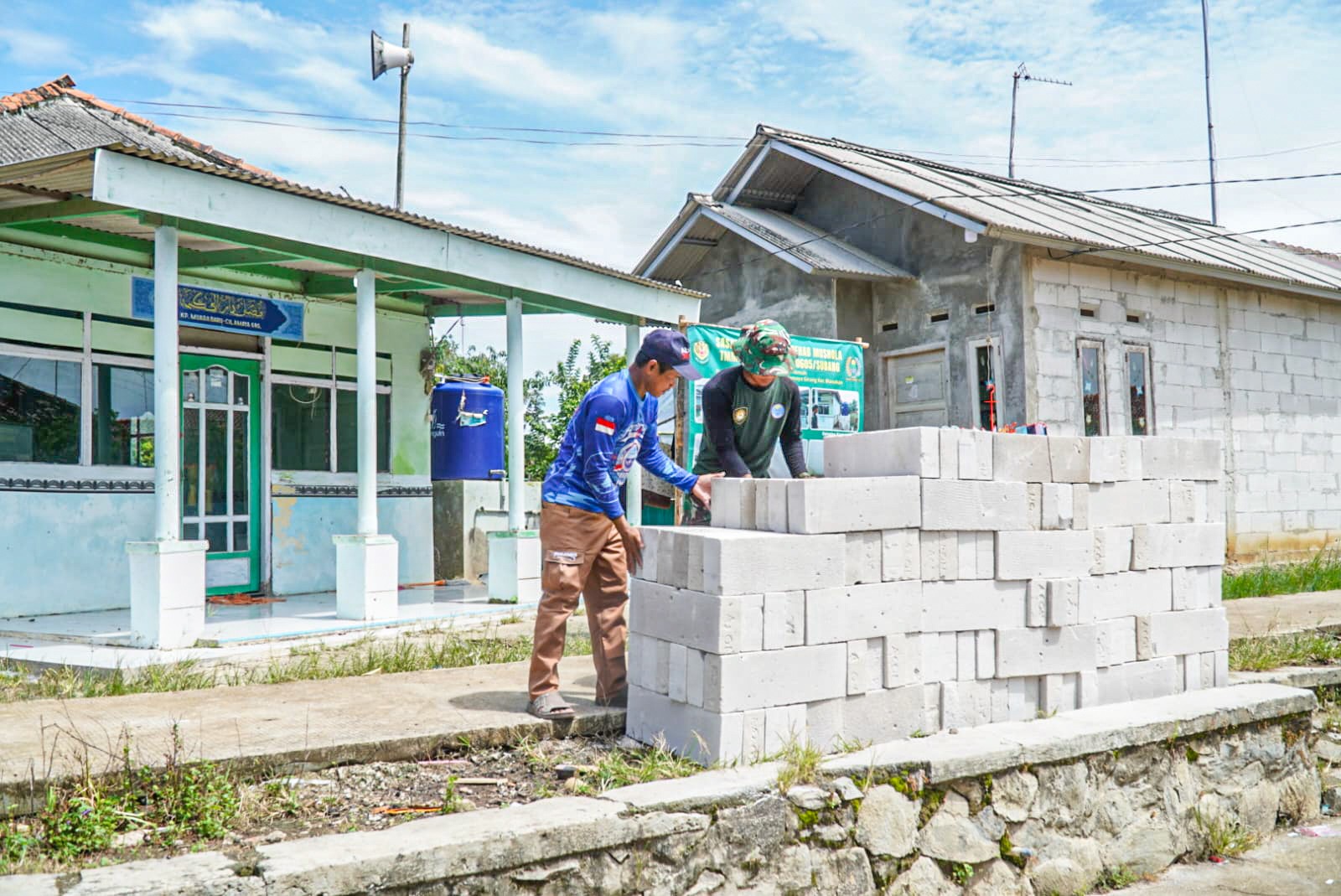 Proses persiapan dimulai dengan pengangkutan dan penyusunan material, termasuk bata ringan yang nantinya akan digunakan dalam proses renovasi. Personel Satgas TMMD bersama warga bekerja sama dalam menata material guna mempercepat proses pembangunan yang telah direncanakan.