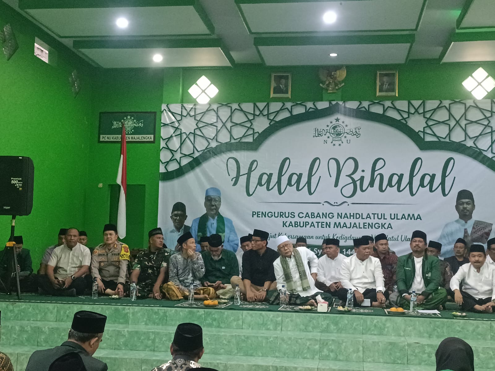 Majalengka, Kapolres Majalengka AKBP Willy Andrian yang diwakili Kasat Intelkam Polres Majalengka AKP Bayu Surya Wulandono didampingi Kapolsek Sukahaji AKP Erik Riskandar menghadiri kegiatan halal bihalal PCNU Kabupaten Majalengka bersama para Kyai se – Kabupaten Majalengka, bertempat di Gedung PCNU Kabupaten Majalengka di Jl. Raya K.H. Abdul Halim Desa Cikalong Kecamatan Sukahaji Kabupaten Majalengka.