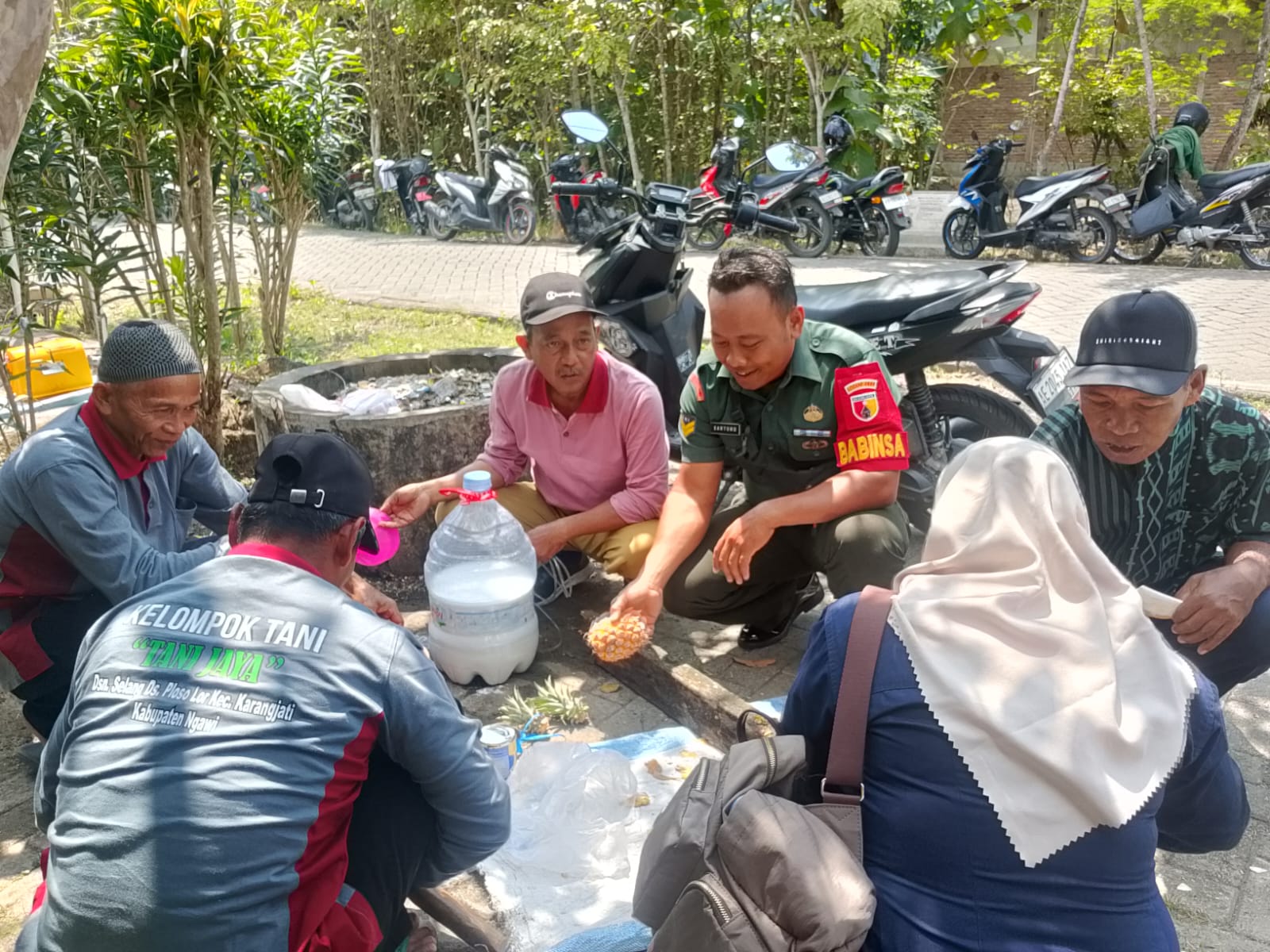 Ngawi – Upaya peningkatan pengetahuan petani dalam mengembangkan pertanian berkelanjutan terus digalakkan.Babinsa Koramil Karangjati, Kofim 0805 Ngawi Sertu Sartono, bersama Petugas Penyuluh Lapangan (PPL) Kecamatan Karangjati, menggelar sosialisasi pertanian dan pelatihan pembuatan pupuk organik kepada para petani di Desa Ploso Lor.Kec. Karangjati, Kab. Ngawi. Senin (25/8/2025).