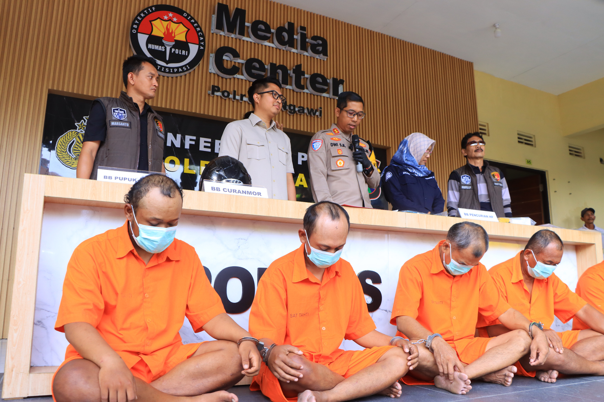 Barang bukti yang diamankan adalah 1 (satu) unit sepeda motor Honda Beat warna merah tahun 2012 No.pol : AE-2371-KU beserta kunci kontak dan STNKnya, 1 (satu) unit sepeda motor Honda Supra X warna hitam dengan Nopol terpasang : AE-5419-B, 1 (satu) unit sepeda motor Yamaha Mio warna merah dengan Nopol terpasang : AE-4855-HV, 1 (satu) unit sepeda motor Honda Supra X 125 warna warna merah hitam dengan Nopol terpasang : AE-2766-VJ, 2 (dua) buah Plat Nomor Sepeda motor dengan Nopol : AE-3035-KL, 1 (satu) buah STNK sepeda motor Yamaha Mio warna merah tahun 2011dengan Nopol : AE-3035-KL, 1 (satu) buah HP merk Infinix warna hitam.