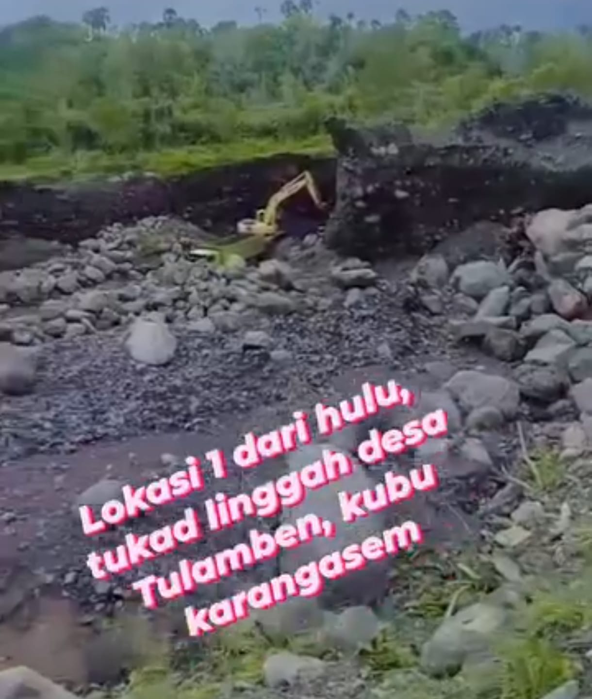 Kondisi memilukan ini mencuat ke ruang publik setelah video situasi terkini Tukad Linggah viral di Facebook, diunggah oleh Wayan Sukanyar, warga lokal Tulamben. Dalam video tersebut, tampak jelas bentang alam yang rusak parah: bantaran sungai terkikis, alur sungai berubah, dan material alam dikeruk tanpa kendali. Unggahan itu bukan sekadar dokumentasi visual, melainkan jeritan warga yang sedih dan marah melihat alam desanya dihancurkan perlahan.