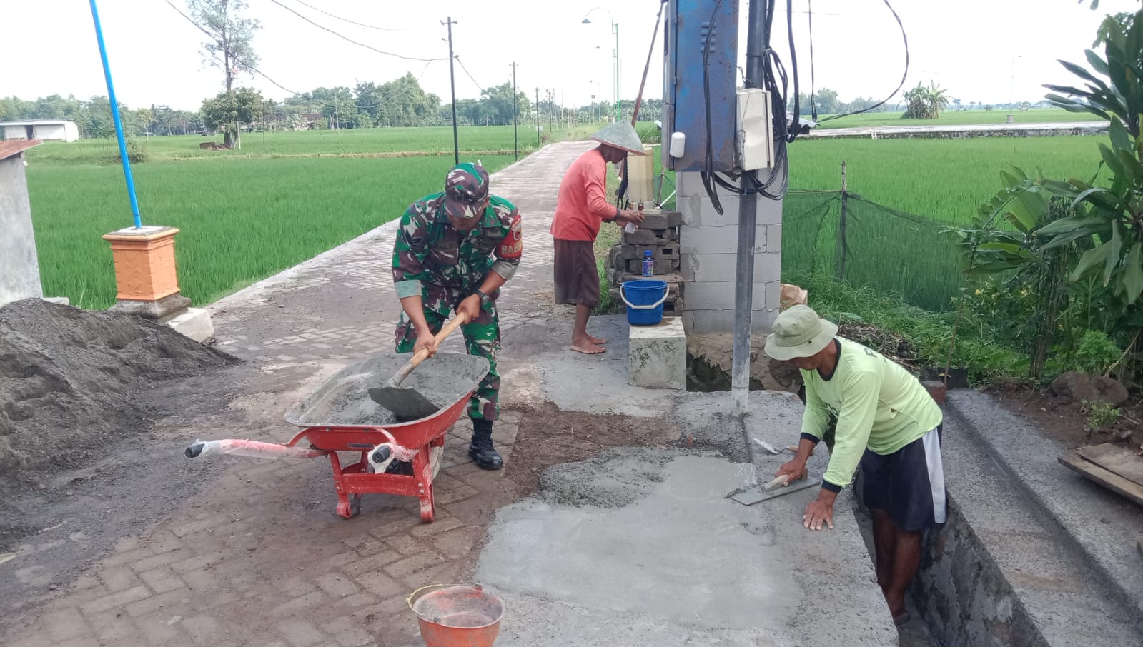 Ngawi – Dalam rangka mendukung pembangunan dan meningkatkan kesejahteraan masyarakat, Bintara Pembina Desa (Babinsa) dari Koramil 06/Kwadungan Kodim Ngawi Sertu Awaludin bersama warga Desa Karangsono melaksanakan kegiatan gotong royong memperbaiki jalan, Sabtu (18/01/2025).