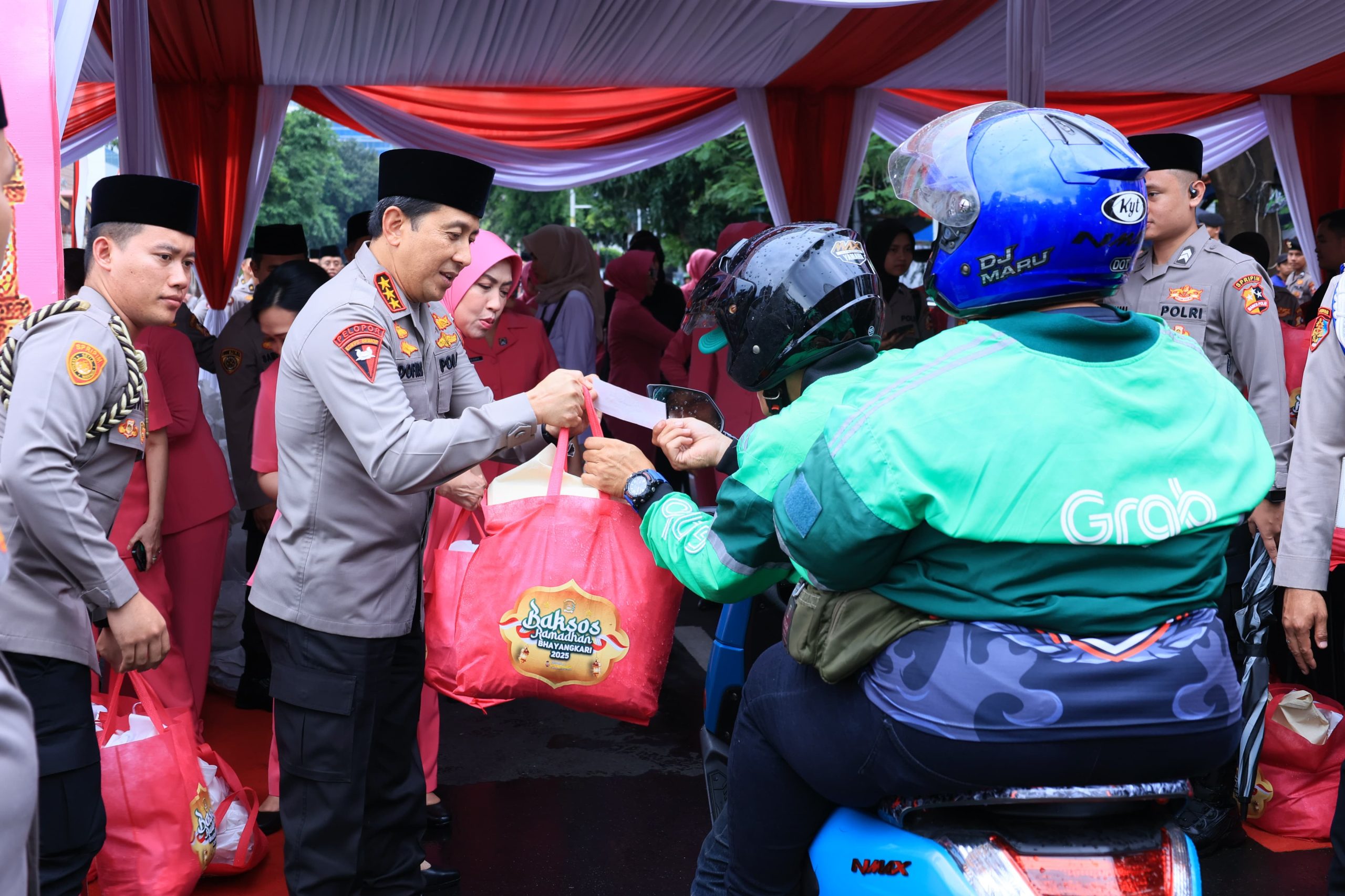 Dalam acara ini, Polri juga membagikan 3 ribu paket sembako gratis kepada driver ojek online di empat lokasi berbeda. Adapun Baksos Ramadan Bhayangkari 2025 membagikan paket sembako gratis ke Mako Korbrimob Polri 750 paket, Lapangan Bhayangkara 750 paket, Lemdiklat Polri 750 paket dan Mako Korpolairud 750 paket.