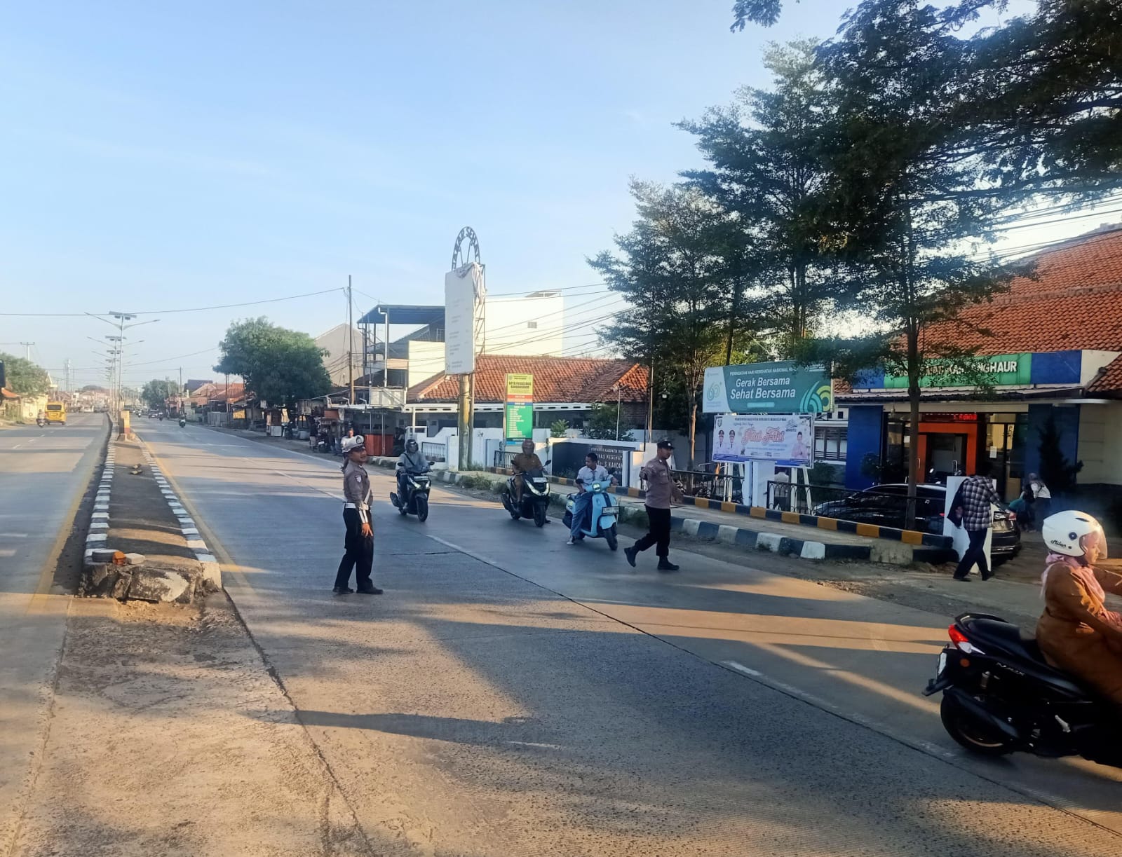 Indramayu – Unit Lalulintas Polsek Kandanghaur Polres Indramayu Polda Jabar melaksanakan kegiatan pengaturan lalu lintas (Gatur Lantas) pagi di Kecamatan Kandanghaur, Kabupaten Indramayu, Rabu (18/6/2025).